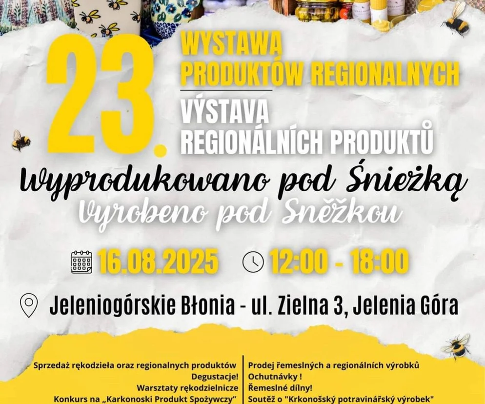 Już w sobotę 16.08 odbędzie się wyjątkowe wydarzenie dla miłośników regionalnych smaków, tradycji i rękodzieła! Na Błoniach Jeleniogórskich rusza 23. edycja wystawy "Wyprodukowane pod Śnieżką". To jedno z największych tego typu wydarzeń w regionie, które co roku przyciąga tłumy mieszkańców i turystów.